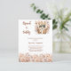 Um convite moderno, na moda e glamouroso para um Chá de panela de bolinho. Fundo branco, decorado com uma cesta com flautas, frascos espumantes e beige, flores cremosas. Personalize e adicione os detalhes da sua festa. 1 folha = 1 convite impresso de borda a borda.