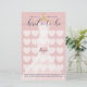 Cartão de jogo de chá de panela de bingo de chá de panela e diversão. Jogo divertido para jogar na sua festa de chá de panela. Vestido cor-de-rosa pincelado elegante com cabide dourado exibido no fundo. Arte original e design por Paparia de Moodthologia.