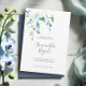 Este chá de panela floral azul apresenta o nome da noiva como definido em uma tipografia de script manuscrito em na moda com detalhes de evento em uma seringa de cinza de carvão clássico, se houver um fundo branco nítido com uma borda superior dos meus florais de aquarela originais em tons de azul, verde e amarelo. A placa de convite reverte para uma cor azul-marinho complementar. Uma escolha botânica, mas elegante, para a praia casual e chás de panela costeiros com tema tropical no Havaí. Para ver toda a minha suíte de papelaria de casamento, visite DoTellABelle no Zazzle.