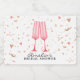Duas taças de vidro rosa com confetes rosa e dourado, estes rótulos de mini garrafas de vinho espumante são perfeitos para um brunch de chá de panela e tema de champanhe. Itens COMBINÁVEIS em nossa coleção.