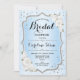 Chá de panela. Design elegante em branco azul e prata. Possui rosas brancas, fonte de script e cintilação falsa prata. Perfeito para um chá de panela na moda. Personalize com seus próprios detalhes.
