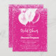 Um fundo rosa quente. Decorado com confete rosa e balões brancos. Texto branco. Personalize e adicione um nome e detalhes da parte. 1 folha = 1 convite impresso de borda a borda.