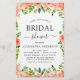 Coral de Orçamento, Peach e branco Floral e Eucalyptus Greenery Primavera ou Convites de chá de panela de Verão - inclui uma bela e elegante tipografia de escrita com flores botânicas modernas e verde para a celebração especial da Noiva a Ser para um próximo Casamento.