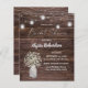 ** SATIN PAPER É PAPEL FINO. ATUALIZE O PAPEL PARA OBTER UM PAPEL MAIS ESPESADO. TEM UMA OPÇÃO PARA ENVELOPES. *** Economize dinheiro em convites com este convite menor que tem uma opção para envelopes. Prepare seus hóspedes para o maravilhoso casamento com este chá de panela de Luzes de Corda de Madeira e Mason Jar Breath do Bebê. Quer uma versão maior? Veja a coleção de casamento do nosso Bebê Breath Floral, Wood & Mason Jar String Lights para cartas. https://www.zazzle.com/collections/babys_breath_wood_floral_invitations-119297909782278132?rf=238937196885903396