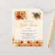Um fundo branco na moda e ouro de cor d'água. Decorado com uma abelha e flores amarelas e laranja. Com o texto: Chá de panela escrito com um moderno estilo escrito à mão. Personalize e adicione o nome da noiva à abelha. Ouro e letras pretas.