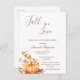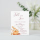 Na frente: Um Chá de panela moderno, elegante e simples para o outono. Um fundo branco. Decorado com uma abóbora ouro, folhagem e algumas flores brancas. Modelos para a noiva ser o nome, data e local do chá. O texto: o Chá de panela é escrito com um script de estilo extenso, escrito à mão, e letras coloridas rosa a ouro escuras. Volta: uma abóbora. Dica: Se você não quiser que pareça um cartão postal, clique em personalizar, vá para o verso e remova o divisor e o carimbo de posto.