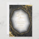 Um fundo de aquarela em tons de cinza de carvão a preto é tocado por um abstrato de linhas de ouro finas e efeitos de iluminação reluzentes para criar as peças desta bela suíte de casamento. A Chá de panela mostrada aqui também apresenta um belo quadro de gradação para segurar todo o seu texto. Adicione facilmente seus próprios nomes, data do casamento e detalhes do evento usando o modelo fornecido. Procure ID867 para ver outras peças e opções de cores para este conjunto.