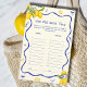 Torne ainda mais divertido o tema principal do seu chá de panela de aperto apertado com este Jogo Personalizado de Idade do Chá de panela de Adivinhação Principal! Apresentando um charmoso design de limão, este jogo interativo é perfeito para uma celebração principal de limão chá de panela. É uma adição encantadora ao tema do chá de panela de limão, trazendo risos e lembranças doces. Excelente para ideias de chá de panela com tema limão, este jogo também ajustado ideias de chá de panela com tema italiano limão e ideias de chá de panela de verão perfeitamente!