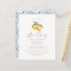 Celebrar a noiva com este elegante e moderno chá de panela de limão. A design do orçamento apresenta uma ilustração feita a cores da água, pintada manualmente, de dois limões e flores de limão pendurados em um galho de árvore, com "Ela encontrou seu primeiro aperto" escrito abaixo. Com tipografia clássica, elegante e uma moderna reviravolta da caligrafia manuscrita, esse chá de panela de aquarela é a perfeita mistura de eternos e contemporâneos, rústicos e minimalistas. Na parte de trás deste chá de panela de aperto principal, estão pintados azulejos italianos azuis para um toque de charme mediterrânico. Convites de chá de panela florais modernos, perfeitos para qualquer evento de primavera ou chá de panela de verão, seja um brunch no quintal, uma turnê no vinhedo, ou uma celebração no lado da praia. Este design vai adicionar um toque de sol a qualquer tema do chá de panela, incluindo rústico, caseiro, inspirado em italiano e tema cítrico. Personalize o convite com os detalhes do evento ou use a ferramenta Design fácil de usar do Zazzle para mudar fontes, cores e posicionamento. Como parte da seleção orçamentária no Zazzle, esta folha não é um tamanho de convite padrão ou qualidade de papel. Se quiser que este design num cartão de convite o encontre na nossa loja ou utilize o Zazzle Make Machine para o transferir para o produto da sua escolha. Procure na nossa loja mais convites de chá de panela de limão.