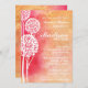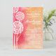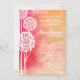 Chá de panela Peach Ombre Trees Convidado. Um fundo cor-de-rosa e cor de pêssego ou de coral divertido, com silhuetas brancas de árvores no topo. Os detalhes e as informações da festa de casamento e chá estão à direita da página em branco e nas fontes de serif e script. Um convite de casamento muito legal. É possível encontrar RSVP correspondente e mais na loja!