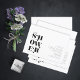 Uma fonte ousada e decorativa imediatamente pega seu olho e define o tom para a maioria das peças desta suíte de casamento moderna e minimalista. A chá de panela de casamento mostrada aqui apresenta um design de tipografia do 'chá de panela', e fornece os detalhes do seu evento, ao mesmo tempo que oferece uma espiada da sua estética de casamento e estilo como casal. Procure ID887 para ver todos os produtos neste conjunto de casamento.