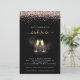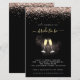 Os Flutos de Champanhe de Glitter Dourados de rosa Celebram a Noiva como um Convite Preto de Chá de panela. Um tamanho maior de 5,5" x 8,5" a um preço orçamentário, em um STOCK CARD SEMI GLOSS de 110 lb, excelente de convites, aproximadamente na mesma espessura de um cartão postal, ou um estoque LINEN elegante de 110 lb - para um luxo, ligeiramente mais fino, com um valor de excelente. OBSERVE QUE OS ENVELOPES OPCIONAIS SÃO UM POUCO MAIORES EM TAMANHO A 6,75" x 9" aprox. Este alternativo de tamanho de orçamento também está disponível em outras opções de papel. O papel FELT de 100 lbs é colorido por buff, NÃO branco, então adiciona um toque rústico. O estoque de papel MATTE de 80 lb é branco brilhante, para impressão nítida, excelente para seus menus e programas, enquanto o papel SATIN de 80 lb é fino e leve, ideal para gabinetes. Uma borda de brilho rosa-ouro está em cada lado no topo, e Chá de panela em um script de estilo de escrita manual. Personalize facilmente o texto para seus próprios detalhes.