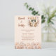 Um convite moderno, na moda e glamouroso para um Chá de panela de bolinho. Creme, fundo colorido de pêssego, decorado com uma cesta de flautas, frascos de vinho espumante e beige, flores coloridas de creme. Personalize e adicione os detalhes da sua festa. 1 folha = 1 convite impresso de borda a borda.