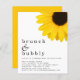 Chá de panela de Bolinho de Girassol de Orçamento. Um alternativo MENOR de 4,5" x 5,6", compatível com o orçamento. Disponível em um STOCK de PLACA SEMI GLOSS 110 lb ou um STOCK de PAPEL THINNER SATIN FINISH 80 lb. Os envelopes são um extra opcional. Estilo informal. Girassol grande moderno para o canto superior direito e o cabeçalho abaixo para a esquerda em na moda com os detalhes no fundo. Personalize facilmente o texto para seus próprios detalhes.