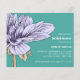 Atordoamento e Chá de panela elegante, com uma magnífica Flor Dahlia em flor na paleta aquarela de marfim refinado e nuances lilás contra um verde esmeralda à esquerda do cartão. Os detalhes do seu partido são graciosamente exibidos à direita, em uma combinação chic de fontes em negrito e serif na cor clássica da cinza. Placa inversa em uma cor de cinza contrastante com espaço para texto extra como registro, site, hospedado por ou outras informações úteis. Muito fácil de personalizar usando o modelo. NOTE: OS ENVELOPES SÃO NOTA INCLUÍDA.