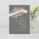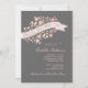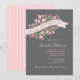 Com um bonito estilo floral, este Convite de festas de chá é feminino e adorável. Uma bela faixa fluindo é enfeitada com flores rosa estilizadas, bagas, botões e verde e colocada sobre um fundo de cinzas de pomba macia. Um design fabuloso para uma festa de chá contemporânea em honra da futura noiva.