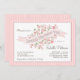 Com um bonito estilo floral, este Convite de festas de chá é feminino e adorável. Uma bela faixa fluindo no centro é adorada com flores rosa estilizadas e verde e o fundo é de duas tonalidades de listras rosa macia. Um design fabuloso para uma festa de chá contemporânea em honra da futura noiva.