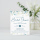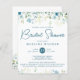 Azul bege branco chá de panela convites de chá de panela florais branco. Personalize nomes, datas e informações.