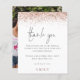 NOTA Há duas opções de papel a escolher para este tamanho (4,5 x 5,6") na faixa de Orçamento. Para este produto, eu recomendaria muito o semibrilho, que é um estoque de cartão de 110 gsm, semelhante em espessura a um cartão postal. A opção Satin é um papel muito mais fino, 80gsm. O padrão é definido como semirbrilho. Chá de panela De Foto Glitter Dourada Do Rosa De Orçamento Obrigado. Uma borda de ouro-rosa está no topo, e Obrigado está em um script de estilo de escrita manual definido em rosa empoeirado. Personalize facilmente o resto do texto para seus próprios detalhes. Na parte de trás troque sua foto favorita do seu chá de orientação para retratos.