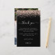 Um tamanho maior de 5,5" x 8,5" a um preço orçamentário, em uma elegante estoque LINEN de 110 lb - para uma sensação de luxo pelo valor do excelente, isso é perfeito para convites, menus, programas etc. Este alternativo de tamanho de orçamento também está disponível em outras opções de papel. O estoque do cartão SEMI-GLOSS de 110 lb tem aproximadamente a mesma espessura do cartão postal, portanto também funciona bem para convites. O papel FELT de 100 lbs é colorido por buff, NÃO branco, então adiciona um toque rústico. O estoque de papel MATTE de 80 lb é branco brilhante, para impressão nítida, excelente para seus menus e programas, enquanto o papel SATIN de 80 lb é fino e leve, ideal para gabinetes. OBSERVE QUE OS ENVELOPES OPCIONAIS SÃO UM POUCO MAIORES EM TAMANHO A 6,75" x 9", APROXIMADAMENTE Rosa Glitter Dourado Chá de panela de Foto Preto. Uma borda de ouro-rosa está no topo, e Obrigado está em um script de escrita manual em rosa empoeirado. Personalize facilmente o texto para seus próprios detalhes. Na parte de trás troque sua foto favorita do seu chá de orientação para retratos.