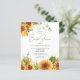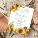Na moda rústico festa de chá de panela de fazenda BUDGET barato cartão de convite com modelo com dourado amarelo girassol com folhagem verde e um moderno e elegante roteiro de caligrafia com letra chic manuscrita.+++++++ Fácil de personalizar com seus detalhes! ++++++++++ O convite é adequado para primavera verão ou outono de chás de panela rusticados de jardim, brunch ou festas de almoço. +++ Verifique todas as informações e a ortografia do seu texto porque você receberá exatamente o que você vê - ninguém mais verificará nada antes de imprimir.