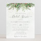 Belos convites de chá de panela de barato com ilustrações botânicas a aquarela pintadas à mão de áreas verdes de inverno, pinheiro e espadilha, cones e bagas sagradas. Escolha perfeita para casamentos temáticos de inverno ou Natal.