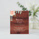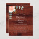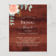 Madeira marrom rustica como fundo. Decorados com ouro-rosa e folhas de eucalipto cor-de-rosa-esbranquiçada, flores de rosa e cor-de-rosa-esbranquiçada, galhos, verde-verde e um cinzeiro de ouro falso. Personalize e adicione o nome da noiva a ser e os detalhes da festa. 1 folha = 1 convite impresso de borda a borda.