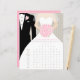 Um noivo gráfico elegante com tux e noiva com véu segurando uma postura de rosas cor-de-rosa estilizados, um jogo clássico de busca de palavras com chá de panela floral. Edite este jogo de chá de panela divertido com o nome das suas noivas. Seus hóspedes vão se divertir tentando procurar e encontrar essas palavras comuns de casamento usando a palavra chave, ideal para oferecer um prêmio para o convidado mais rápido que completá-lo. Design exclusivo e arte gráfica por Sarah Trett.
