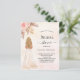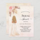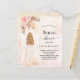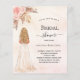 Um fundo rosa dourado, cor-de-rosa-claro. Uma noiva, rosas cor-de-rosa, grama-pampas. Personalize e adicione um nome e detalhes da parte. 1 folha = 1 convite impresso de borda a borda.