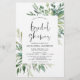 Convites de chá de panela de Casamento da primavera com Mola Botânica Verde Floral sobre fundo verde e branco - inclui belíssima e elegante tipografia com folhas botânicas modernas e verde para a festa especial Bride Be.