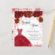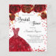 Um convite moderno, na moda e glamouroso para um Bridal Showr. Um fundo branco com brilhos, um vestido vermelho e rosas vermelhas, florais. O nome é escrito com um moderno estilo escrito à mão. Personalize e adicione os detalhes da sua festa.