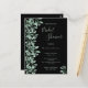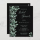 Um chá de panela de tendência em preto e verde. Um fundo preto chic na frente. Decorados com prigos botânicos verdes e folhagem verde. Escrita moderna e extensa, tipografia com texto: Chá de panela. Modelos para a noiva ser o nome e os detalhes da festa. Texto verde claro. Fundo: fundo preto.