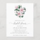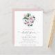 Elegante chá de panela floral com um buquê de flores cor-de-água pintadas de magnólia rosa e folhas de eucalipto juntamente com "chá de panela" em um roteiro delicado. A parte de trás é uma sombra coordenadora de rosa. Um design adorável que é excelente para uma festa de primavera ou verão. Esses convites de chá de panela baratos são impressos em folhas de papel para uma opção econômica.