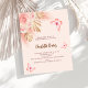 Para um Chá de panela moderno estilo boho. Um fundo de pêssego. Decorados com ouro rosa e flores, rosas, erva-pampas e borboletas cor-de-rosa. Personalize e adicione um nome e detalhes da parte. Fundo: fundo colorido de pêssego e borboleta. 1 folha = 1 convite impresso de borda a borda.