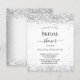 Um chá de panela moderno e elegante. Na frente: um fundo branco de na moda, decorado com poeira falso prateada. Personalize e adicione um nome e detalhes da parte. Volta: fundo com aspecto sujo de prata e faxes de prata.