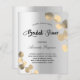 Um chá de panela moderno e elegante. Fundo metálico de aspecto fino prateado decorado com ouro de sulcos de eucalipto. Personalize e adicione um nome e detalhes da parte. Letras pretas coloridas.