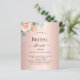 Um fundo rosa dourado. Decorados com ouro-rosa e folhas de eucalipto cor-de-rosa-esbranquiçada, flores de rosa e cor-de-rosa-esbranquiçada, galhos, verde-verde e um cinzeiro de ouro falso. Personalize e adicione o nome da noiva a ser e os detalhes da festa. Fundo rosa dourado