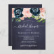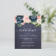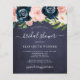 Modelo de convite para a festa de chá de panela moderno do barato chic moderno, num fundo de quadro negro de quadro de marinho, com uma borda floral cor-de-rosa e rosas de pénia marinho, e um script de tipografia elegante de letra de letra de letra elegante da tendência.+++++++++ Fácil de personalizar com os seus detalhes! Você pode personalizá-lo alterando ainda mais as fontes e as cores das letras. ++++++++++ O convite é adequado para um país rústico, boêmico, chá de panela de quintal de jardim, brunch ou festa de almoço. +++++++++ LEIA ISTO ANTES DE COMPRAR! Este é um cartão de casamento de barato orçamentário impresso em uma folha de papel (cada folha tem um cartão). +++ Para obter a melhor qualidade de preço, nosso conselho é escolher o tipo de papel Semi-Gloss (é espesso o suficiente para ser usado para papelaria) +++ Se você precisar de envelopes, escolha a OPÇÃO ENVELOPE. ++ Verifique duas vezes todas as informações e a ortografia do seu texto porque você receberá exatamente o que você vê - ninguém mais verificará nada antes de imprimir. +++ Esta placa foi projetada para o tamanho de 4,5" x 5,6". Caso você escolha outro tamanho do cartão e o texto saia da página, tudo precisa ser corrigido antes de adicionar o produto ao carrinho. Peça ajuda ao Serviço de Design ao Vivo.