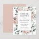 Elegante convites de chá de panela floral com uma moldura constituída por rosas pintados de cor d'água em cor rosa-rosa poeirento e verde-seno em tons de verde-sábio. Um adorável design botânico perfeito para um primavera ou chá de panela de verão. Esses convites de chá de panela baratos são impressos em folhas de papel para uma opção econômica.