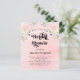 O par perfeito de rosa e ouro. Decorado com pequenos brilhos de ouro. O fundo é um cor-de-rosa pincelado suave, enquanto as flores são brancas com verde de eucalipto. Personalize e adicione um nome e detalhes da festa a esta peça elegante que fará seus convidados se sentirem especiais. Este convite também está disponível em nossa loja com código QR e símbolos de mídia social no verso.