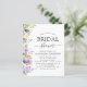 Primavera de Orçamento ou Verão Eucalyptus e Purple (Lavanda) & Orange (Peach) Flores Florais Flores Botânicas Watercolor Granulado Convites de chá de panela de Casamento em fundo branco - inclui uma tipografia moderna, bela e elegante, com folhas botânicas modernas e verde para a celebração especial Bride Be.