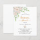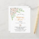 Fundo branco, decorado com flores brancas, peões e verde. Personalize e adicione o nome da noiva a ser e os detalhes da festa. Letras pretas e ouros coloridas. 1 folha = 1 convite impresso de borda a borda.