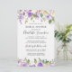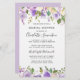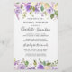 Combinação muito bonito de rosas roxos escuros, rosas roxos claros e flores brancas de marfim. Todos estão presos em uma variedade de folhas verdes. Juntos, eles criam bordas florais ao longo da parte superior e inferior deste chá de panela. O nome da noiva está escrito em uma fonte grande de script.