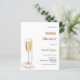 Um convite moderno, na moda e glamouroso para um Chá de panela de Pérolas e Prosecco. Fundo branco com vidro, flauta com bolhas de ouro e pérolas. O nome é escrito com um moderno estilo escrito à mão. Personalize e adicione os detalhes da sua festa. 1 folha = 1 convite impresso de borda a borda.
