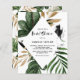 Convide convidados para o seu evento com este chá de panela personalizável. Apresenta ilustrações de aquarelas de verde tropical com folha de ouro falsa e sotaques de pincel preto. Personalize adicionando seus detalhes. Este chá de panela tropical é perfeito para chás de panela de verão.