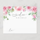 As rosas cor-de-rosa embaçam cartões de aviso de chá de panela.