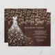 Diamantes brancos e brilhantes vestido de noiva em um fundo de madeira marrom-escura com cordas de luzes brilhantes fazer um moderno e elegante chá de panela inspirado pelos russos. ++++++++++++ LEIA ISTO ANTES DE COMPRAR! Este é um cartão de barato de orçamento impresso em uma folha de papel (cada folha tem um cartão). +++ Para obter a melhor qualidade de preço, nosso conselho é escolher o tipo de papel Semi-Gloss (é espesso o suficiente para ser usado para papelaria) +++ Se você precisar de envelopes, escolha a OPÇÃO ENVELOPE. ++ Verifique duas vezes todas as informações e a ortografia do seu texto porque você receberá exatamente o que você vê - ninguém mais verificará nada antes de imprimir. +++ Esta placa foi projetada para o tamanho de 4,5" x 5,6". Caso você escolha outro tamanho do cartão e o texto saia da página, tudo precisa ser corrigido antes de adicionar o produto ao carrinho. Peça ajuda ao Serviço de Design ao Vivo.