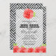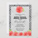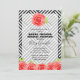 Os Convites de chá de panela temáticos derivados apresentam rosas de cor d'água vermelha em um fundo de faixas diagonais brancas e pretas in a box. CORRESPONDENDO a itens na nossa loja.