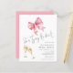 Orçamento Ela é Casando de Arco rosa. Um alternativo menor, com preço de 4,5 x 5,6 pol, em um semigloscópio de 110 lbs de espessura semelhante a um cartão postal. Há um por folha. O cabeçalho principal está em um script de conjunto elegante. O resto do texto que você pode personalizar facilmente.