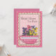 convite de festas de chá de chá de panela feito em uma bolinhas rosa bonito, na frente externa e uma xícara colorida de flores pansy. O texto no fundo cor-de-rosa sólido está pronto para personalizar para ler o que quiser. Adorável convite para a noiva ser amada.